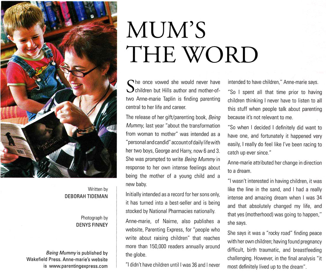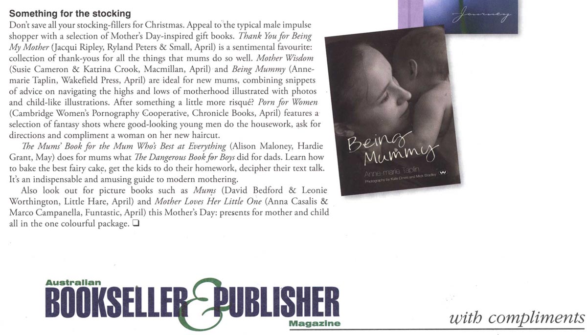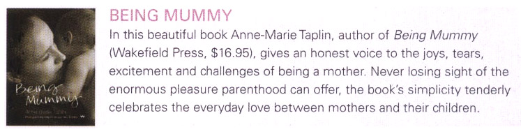 Being Mummy is one woman’s journey as she discovers just such a truth. In this evocative book, Taplin captures the exhilarating roller coaster ride of early motherhood. Taplin’s delicate prose captures the enchantment of feelings of overwhelming love. Yet she does not sentimentalise or idealise motherhood. She writes about a mother’s disenchantment too, of exhaustion and of never having a moment alone, of wondering where her old life has gone.